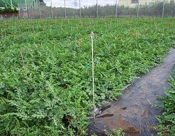 西瓜マルチの穴あけ(2014.07.11)