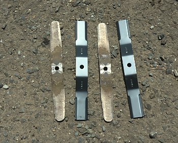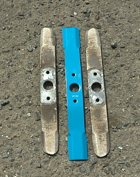 りんご園地の草刈に使用している乗用モアの替刃を組み替えた。 「組み替えた」というのは、交換ではなく、既に付いていた刃の「向きを変えた」ということです。 この草刈機は、前後進の進行方向に関係なく一定方向に回転しているため、刃は片側のみ摩耗し…