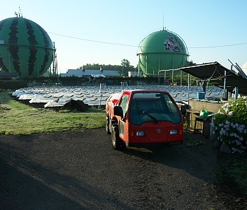 畑の作業も細かいことがいっぱい。 リンゴだ、スイカだ、花だ・・・と、いろいろありますが、重宝しているのが軽トラです。 でも、うちの軽トラはナンバー無しの園地内限定車です。 他の果樹園などでは、屋根を切り取ってオープンカー仕様にしているものも…