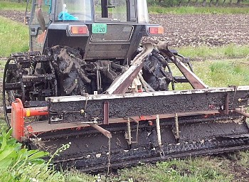 代掻きです。 デコボコの無いよう気を使いますが、浮き藁を少なくすることにも気を使っています。 浮き藁を少なくするため ①水の量を少なめで掻く ②作業速度を遅くする ③入水後数日おいて藁に吸水させる ④稲刈り後の秋耕を早めに、春耕もする ⑤PTOの回…