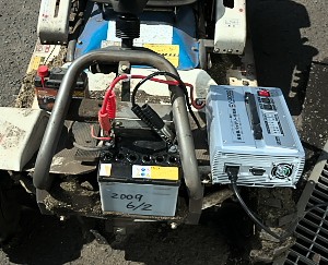 今日は、ライムソワーを使って西瓜畑に肥料を散布です。 で、ライムソワーの手前に置いてある乗用草刈り機を移動しようとイグニッションキーをオン。 「クンッ・・・・・ 」 あれ、バッテリーあがりかな・・・ もう一度キーをオン。 「クンッ・・・・・ …