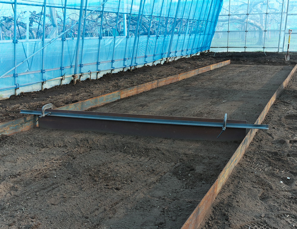 プール育苗床作りで、最も重要で厄介な均平(水平)作業。 均平方法は、農家個々でやり方が千差万別。 ここで手を抜くと後々苦労することになるので、せっかくのプール育苗の利点が生かせなくなることも。 私の場合は、写真を見てのとおり、前日に水平…