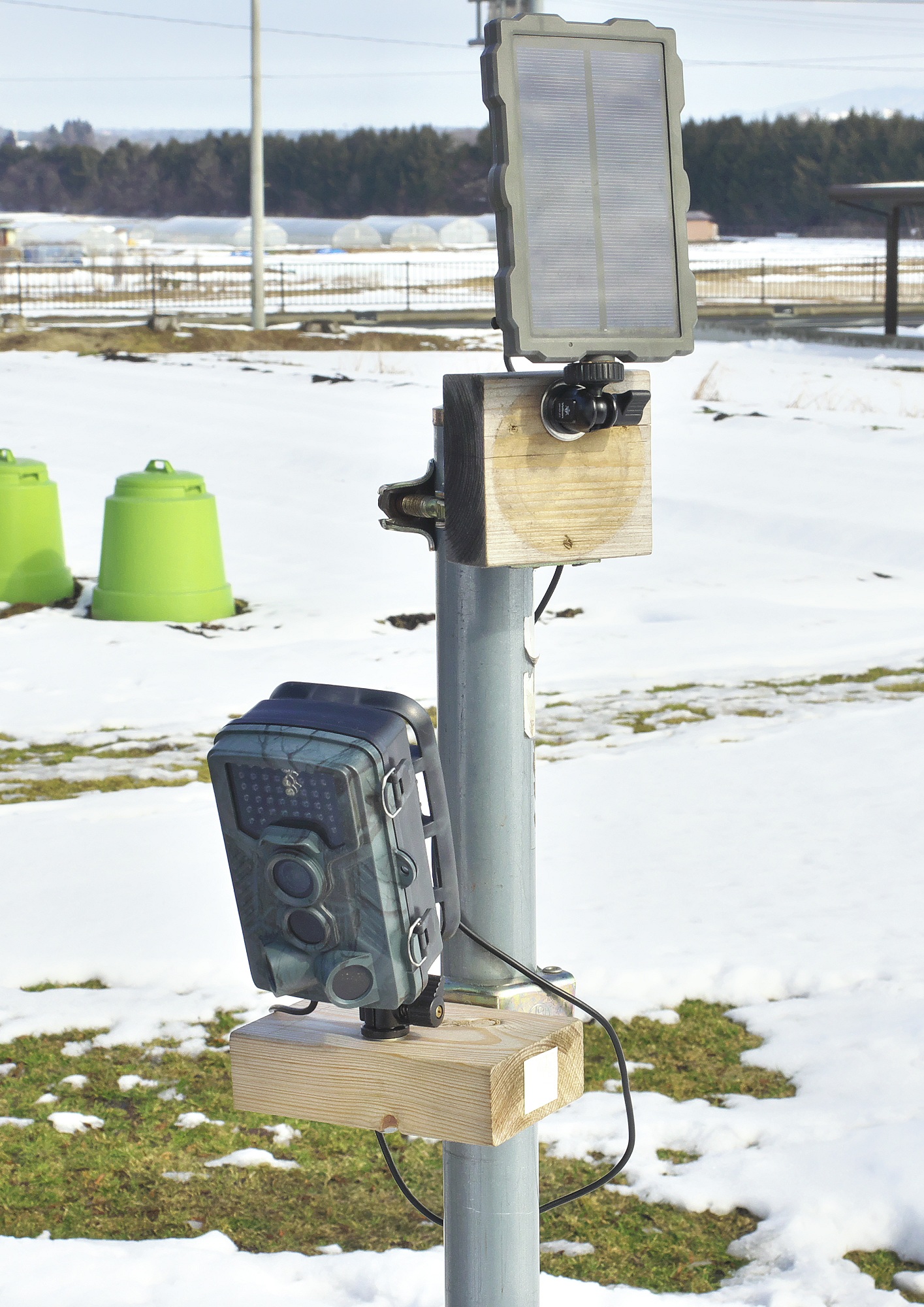 2018年にトウモロコシが食い荒らされる被害があった。 当園では林檎と西瓜の他に野菜類も栽培しているが、まず犯人を特定する必要があり、トレイルカメラ(写真)を設置して観察を続け、タヌキとキツネ、そしてハクビシンも出入り(出没)していることを…